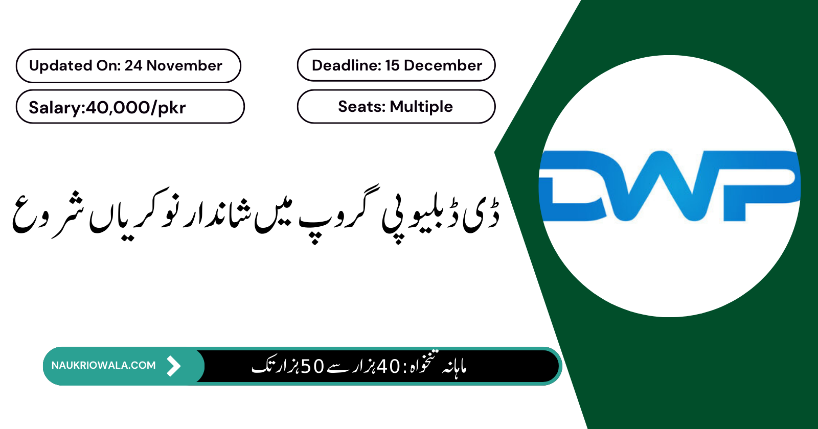 If you want to work for a private organization, then DWP Group Jobs is for you. Now you can apply online for these jobs, so you are in the right place to do your next job in Islamabad. For further details, read the full post carefully.
