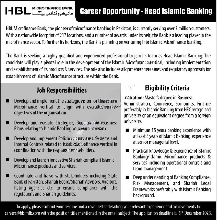 If you want to work for a private organization, then HBL Microfinance Bank Jobs is for you. Now you can apply online for these jobs, so you are in the right place to do your next job in Lahore. For further details, read the full post carefully.