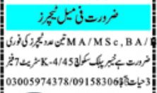 Public School and College of Khyber Peshawar, Peshawar, Peshawar Khyber Pakhtunkhwa KPK Pakistan seeks applications from qualified applicants for the positions of female teacher and teacher, as advertised in the daily Mashriq Newspaper on November 24, 2023. BA, Bachelor, MA, M.Sc., and Master’s degrees are all necessary.