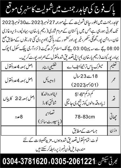 - Last date to apply for Mujahid Force Jobs is 07th December 2023.