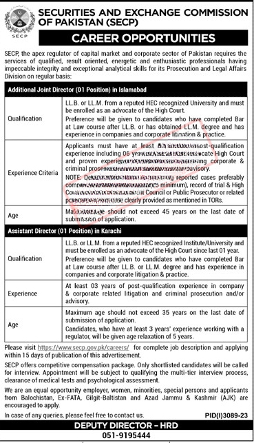 - Visit https://www.secp.gov.pk Careers/ for a complete job description and apply online.
